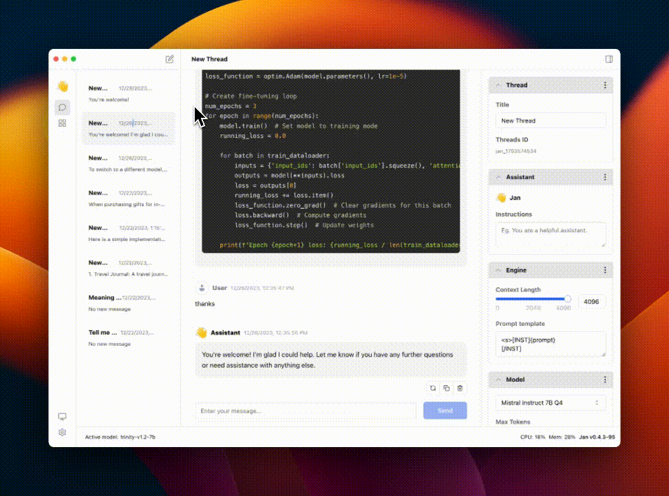 Jan is an open-source alternative to LM Studio with a clean and elegant UI. The developers actively engage with their community (X and Discord), maintain good documentation, and are transparent with their work — for example, their roadmap.